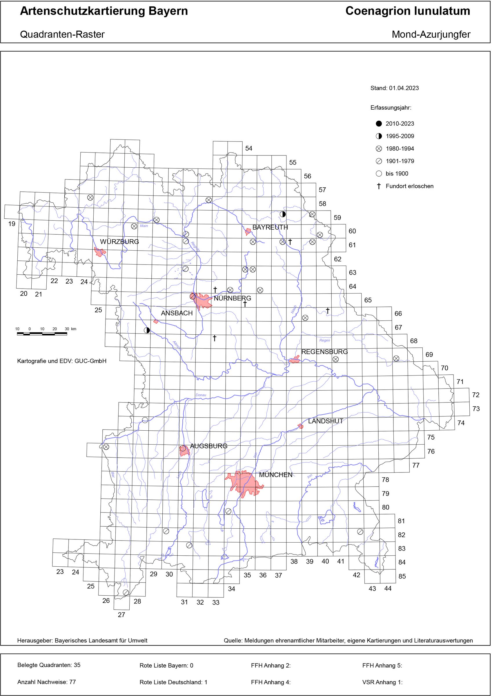 Die Mond-Azurjungfer (Coenagrion lunulatum) trat fast ausschließlich an einer Handvoll Stellen in Nord- und Ostbayern auf, die Vorkommen im Alpenvorland waren schon länger erloschen. Teiche und Weiher, Tümpel und Kleingewässer zählten zu ihren bevorzugten Lebensräumen. Die Regionen sind im Sommer im Durchschnitt wärmer, niederschlagsärmer und weisen geringere Luftfeuchtigkeit auf, als es dem allgemeinen Klima entspricht. Im Winter sind sie hingegen im Durchschnitt kälter. Sonnenexponierte, kleine, flache Gewässer bieten diese Bedingungen, sie erwärmen sich im Frühjahr schnell, kühlen aber im Winter stark ab.