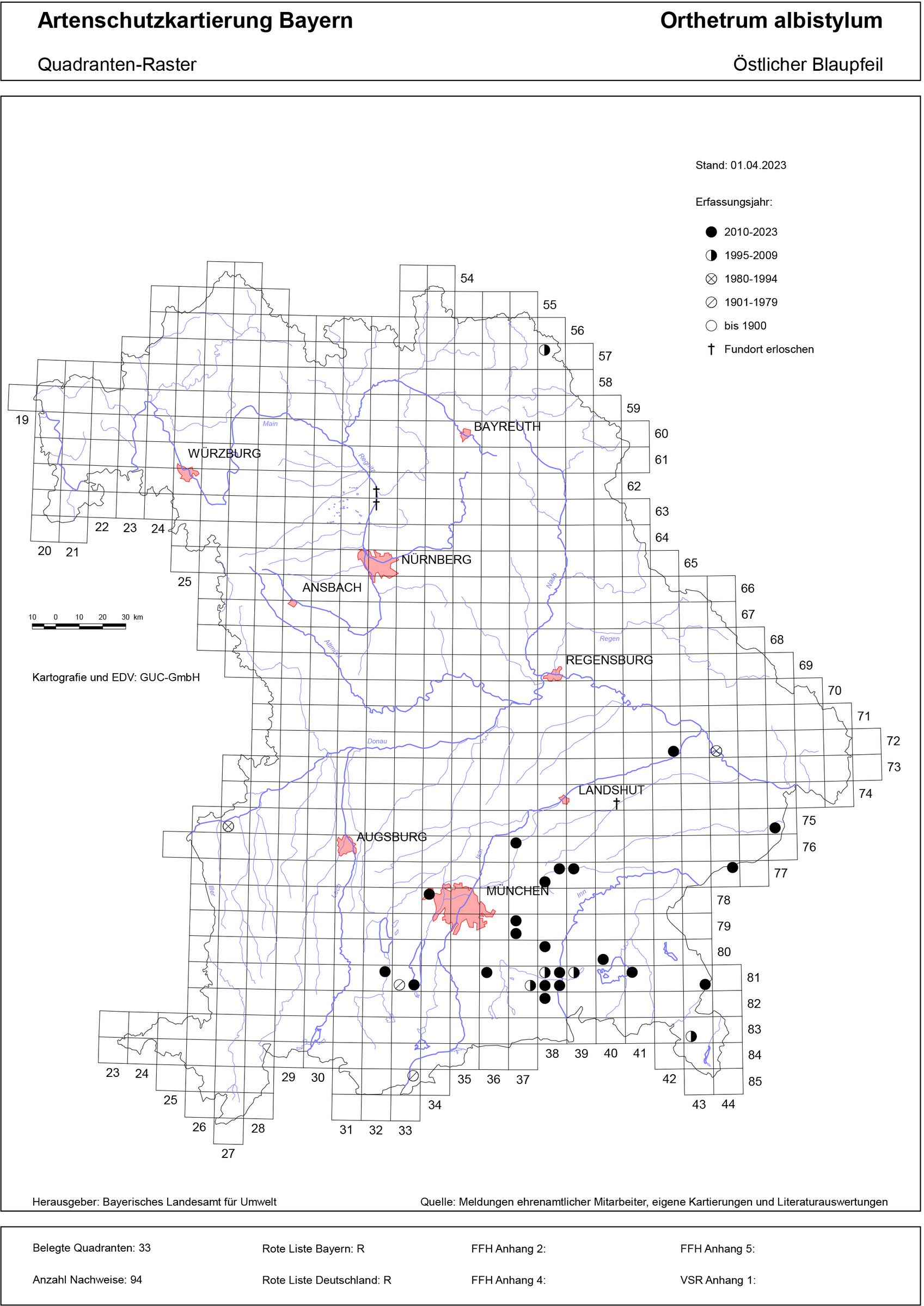 Der Östliche Blaupfeil (Orthetrum albistylum) hat derzeit nur wenige aktuelle Nachweise in Südostbayern. Die wärmebedürftige Tieflandart stößt aus dem Mittelmeerraum in das südliche Mitteleuropa vor. Sie ist in Bayern als unstete Art einzustufen, die bei Erhebungen vermutlich auch übersehen oder mit dem Großen Blaupfeil verwechselt wird. Die Art besiedelt generell stehende und langsam fließende Gewässer. In Bayern wurde sie an Seen und Altwassern sowie einem Fischteich beobachtet. Bei den Entwicklungsgewässern des Östlichen Blaupfeils scheint es sich um überdurchschnittlich warme Gewässer zu handeln.