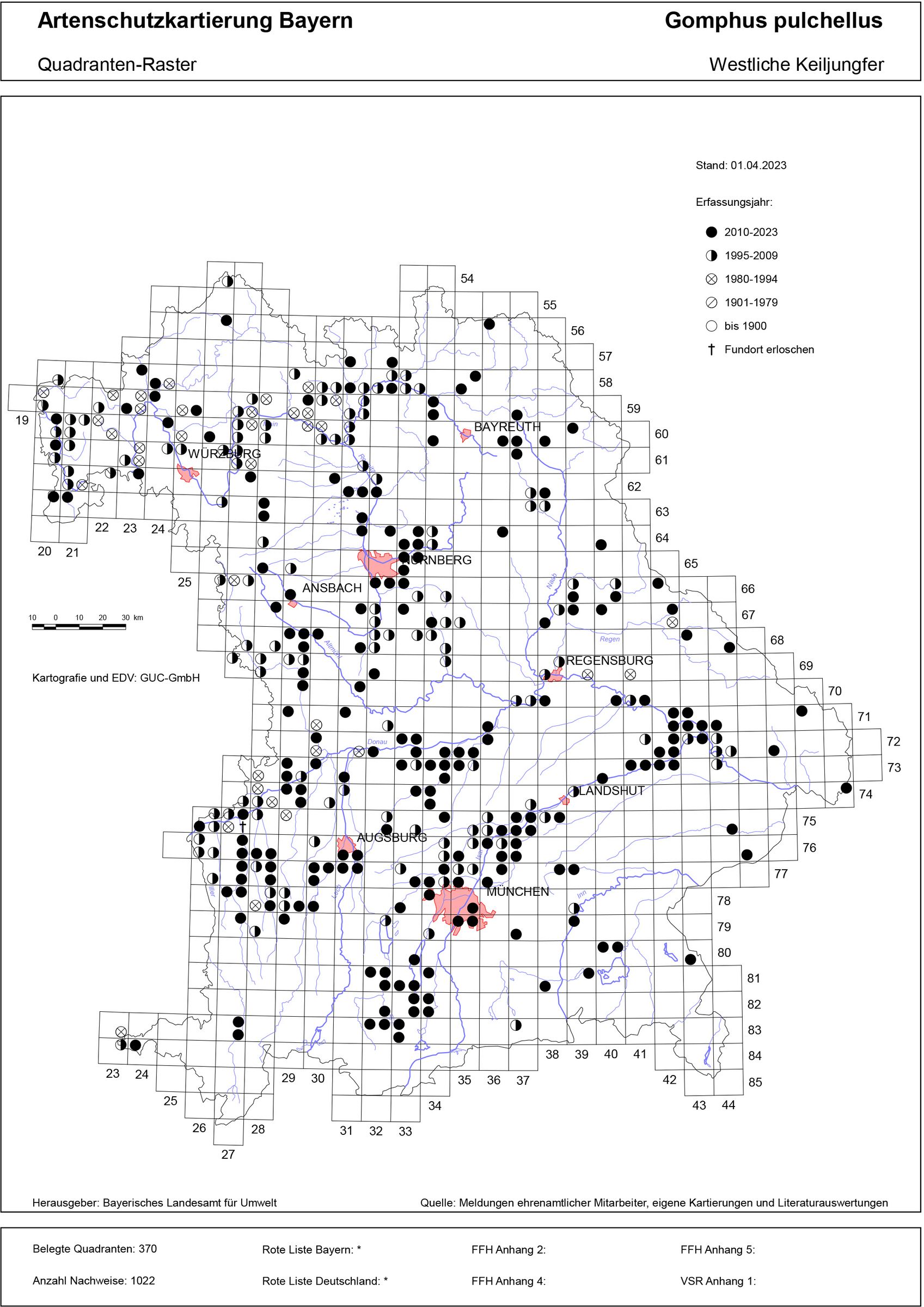 Bayern liegt an der östlichen Grenze des Gesamtareals der Westlichen Keiljungfer (Gomphus pulchellus). Sie hat sich in den letzten Jahren von Nordwesten und Westen her ausgebreitet, zählt aber noch zu den weniger verbreiteten Arten. Ihre Hauptverbreitung liegt im Schweinfurter Becken, im Sandsteinspessart und im Donauried. Der Fundortzuwachs liegt weit über dem Durchschnitt und wird auf eine Zunahme von Kiesgruben und Baggerseen sowie die Klimaänderung zurückgeführt. Der Schlupf der Libelle erfolgt bei der Westlichen Keiljungfer in etwa einer Stunde und damit viel schneller als bei vielen anderen Arten.