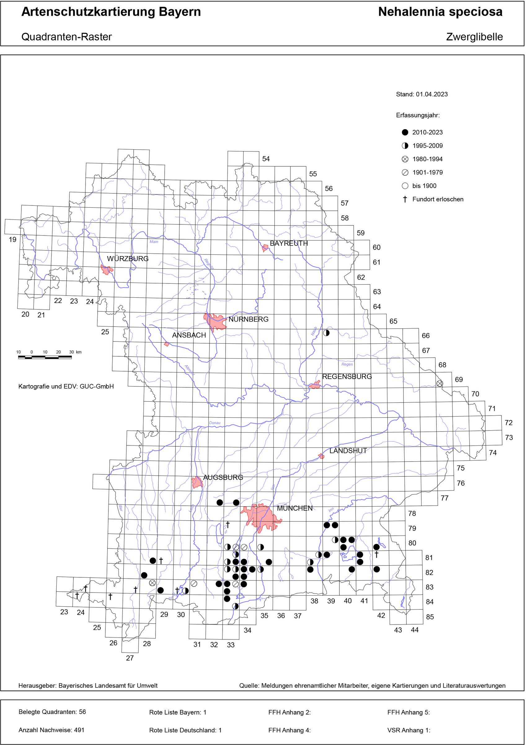 Zwerglibellen (Nehalennia speciosa) stellen sehr spezielle Ansprüche an ihren Lebensraum, ihre Larven bewohnen in Bayern Seggensümpfe mit gleichmäßig niedriger Vegetation und weitgehend konstantem, niedrigem Wasserstand. Die seichten Moorgewässer erwärmen sich stark, sind nährstoffarm, meist schwach bis mäßig sauer und von Mineralbodenwasser (z.T. kalkquellig) beeinflusst. Die Vegetation, in der die ausgewachsenen Libellen ruhen, jagen und sich fortpflanzen, besteht meist aus mäßig bis sehr dichten, relativ hochwüchsigen Seggenbeständen.