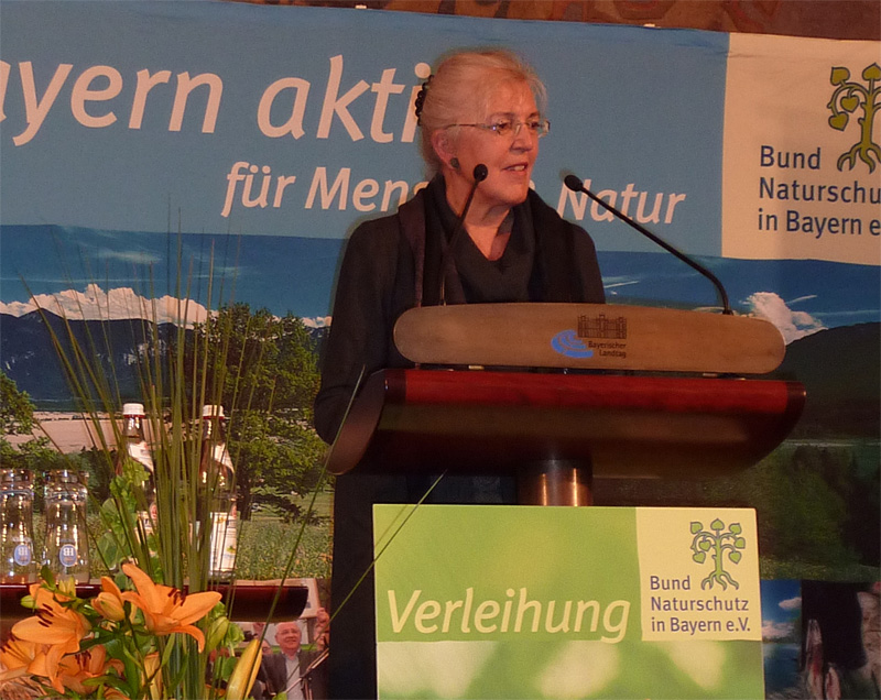 Im Rahmen einer Festveranstaltung im Bayerischen Landtag am 27. November ehrte der Bund Naturschutz Christine von Weizsäcker, die sich weltweit erfolgreich für die Erhaltung der biologischen Vielfalt und gegen die gentechnische Manipulation von Pflanzen, Tieren und Lebensmitteln einsetzt. Der Bund Naturschutz verleiht den Bayerischen Naturschutzpreis seit über 30 Jahren an hoch verdiente Persönlichkeiten für ihr herausragendes Wirken im Naturschutz. Er ist die höchste Auszeichnung des Bundes Naturschutz, dem ältesten und größten Naturschutzverband des Freistaats und damit die bedeutendste Naturschutzauszeichnung Bayerns.