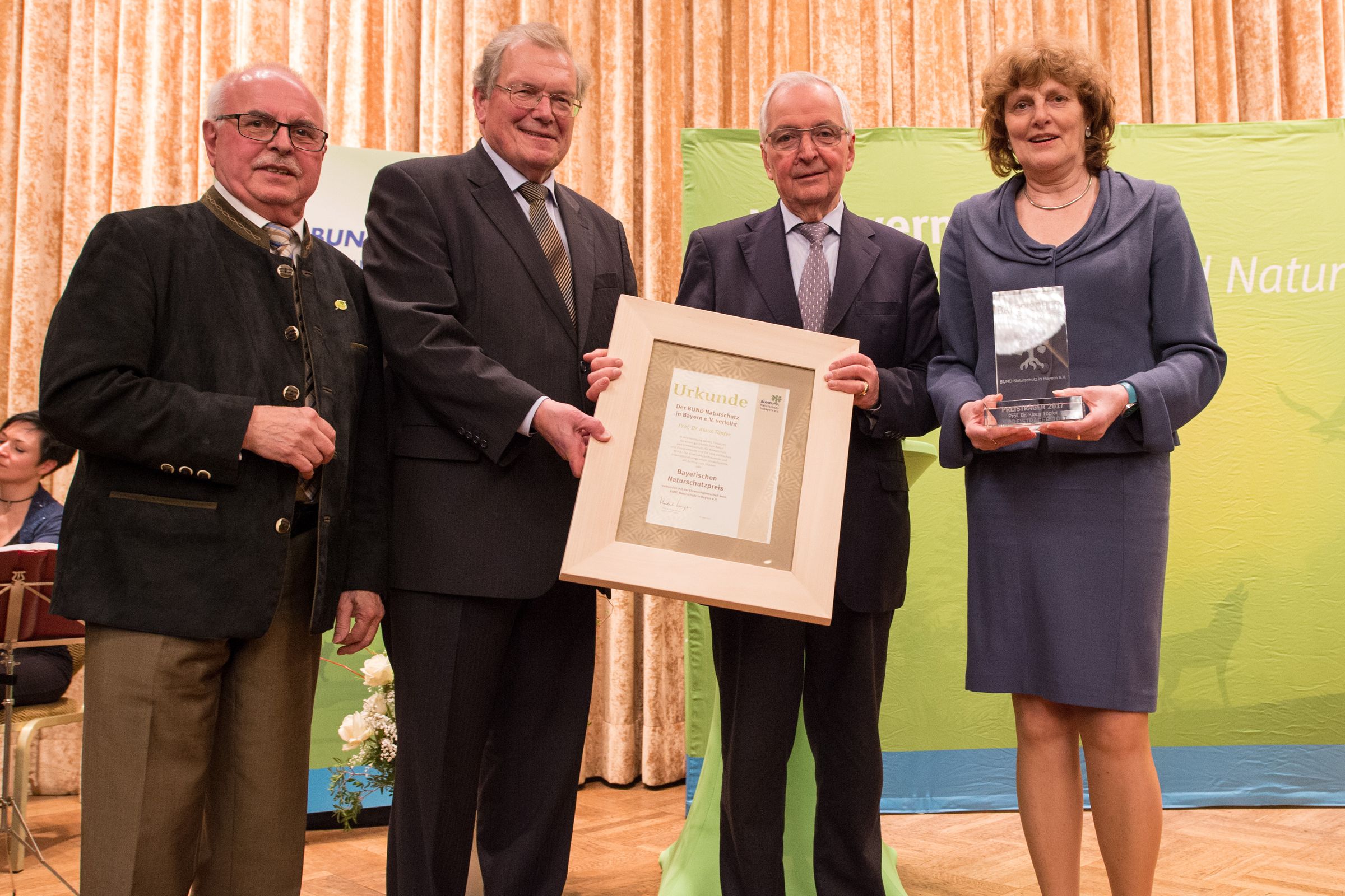 Für seine großen Verdienste um eine Weltpolitik der nachhaltigen Entwicklung verlieh der BUND Naturschutz (BN) Klaus Töpfer am Freitag in München den Bayerischen Naturschutzpreis – die höchste Auszeichnung des Verbandes. Klaus Töpfer ist der Öffentlichkeit vor allem bekannt als früherer Bundesumweltminister und Direktor des Umweltprogramms der Vereinten Nationen.