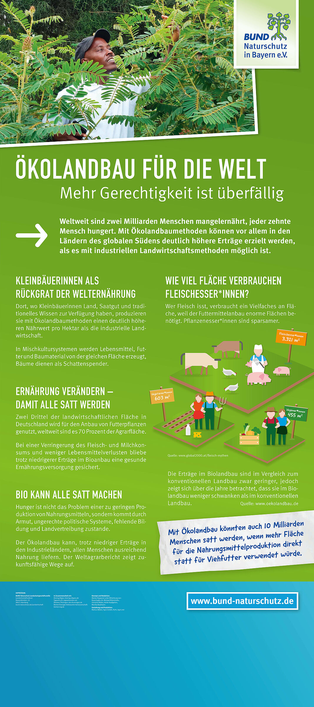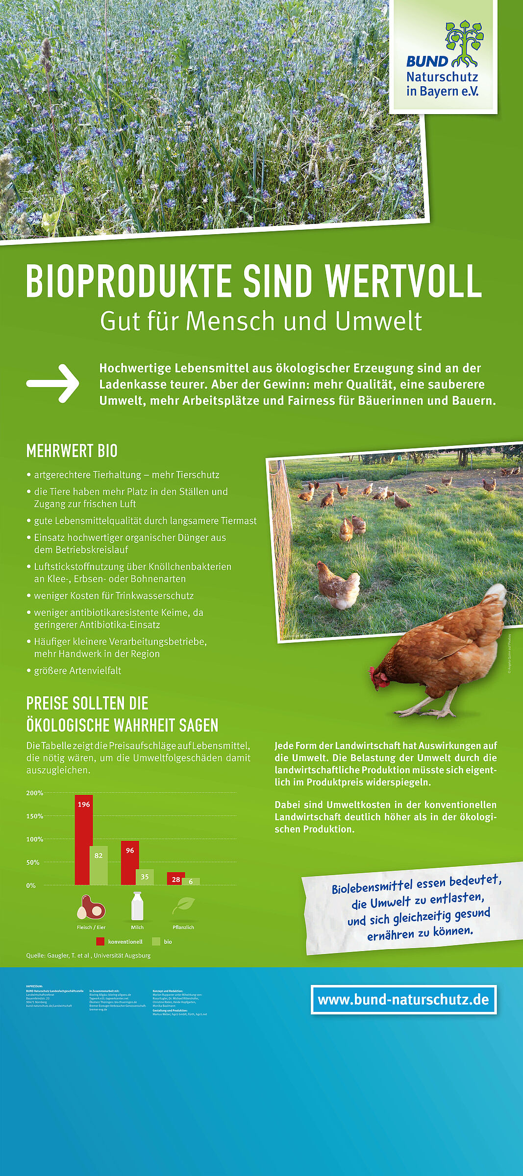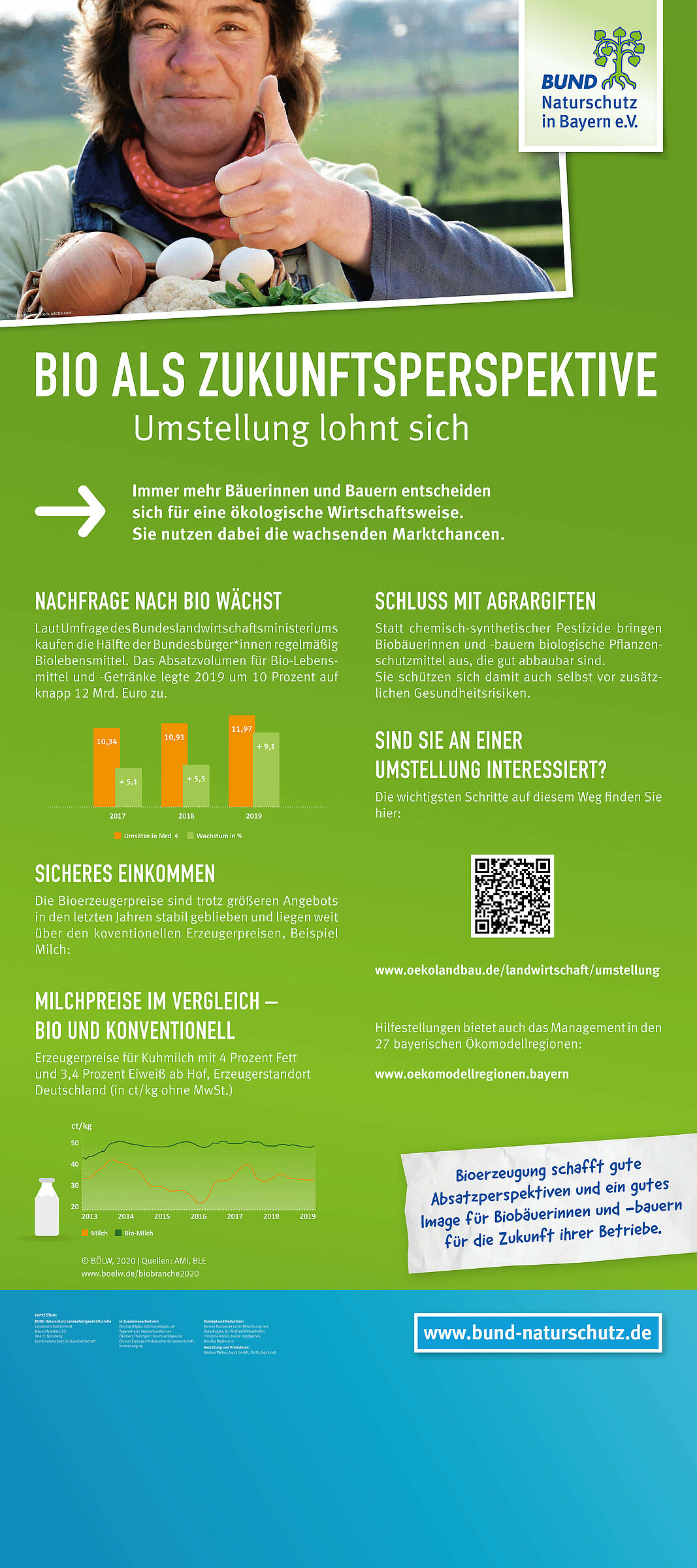 Ob man die Tierhaltung, die Klimabilanz, die Auswirkungen auf Wasser und Boden oder auf die Artenvielfalt betrachtet, Biolandwirtschaft bietet ein hervorragendes Schutzkonzept. Verbraucherinnen und Verbraucher erhalten beste Lebensmittel, Bauern und Bäuerinnen erwirtschaften höhere Erlöse und auch global betrachtet überwiegen die Vorteile für Mensch und Umwelt.