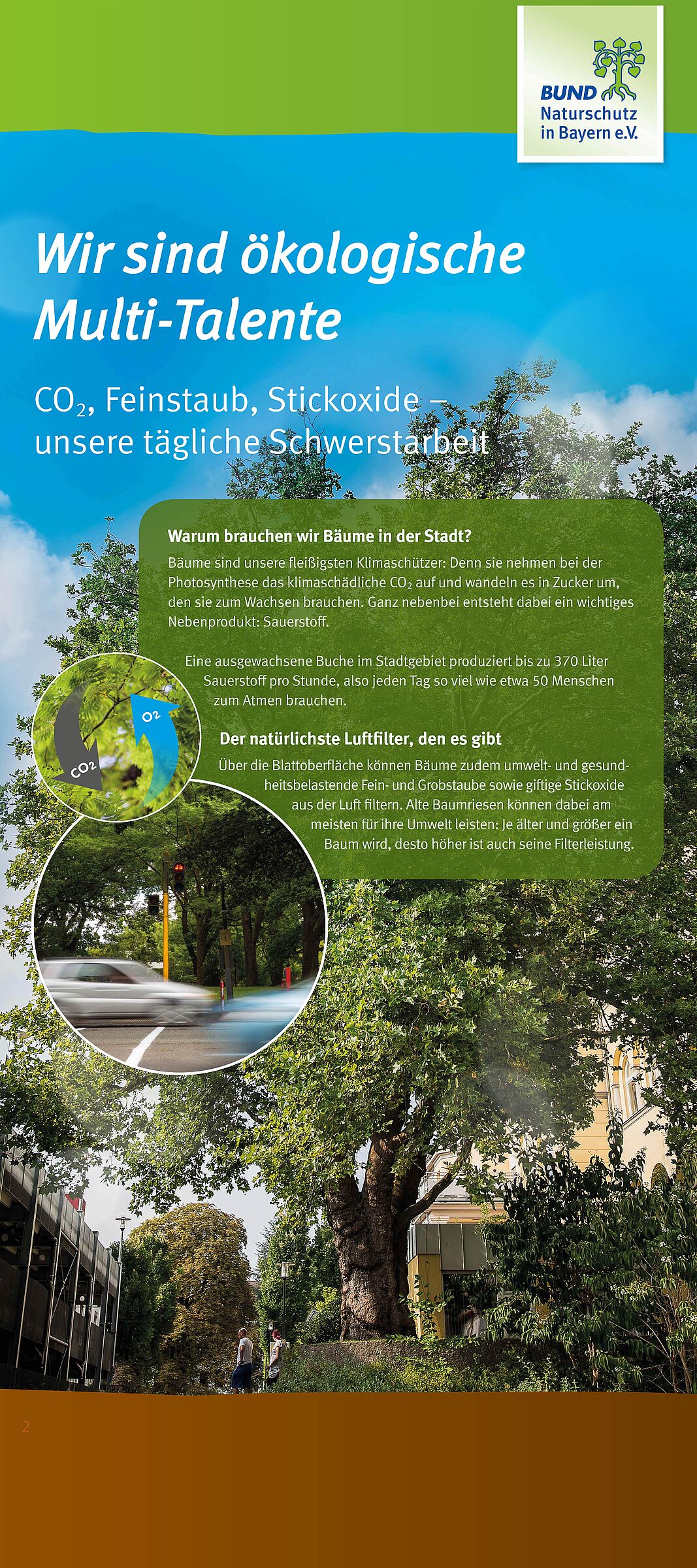 Eine ausgewachsene Buche im Stadtgebiet produziert bis zu 370 Liter Sauerstoff pro Stunde, also jeden Tag so viel wie etwa 50 Menschen zum Atmen brauchen. Dazu bieten Sie ein schützendes Dach für zahlreiche Tierarten und werden zur grünen Klimanalage in der Stadt.