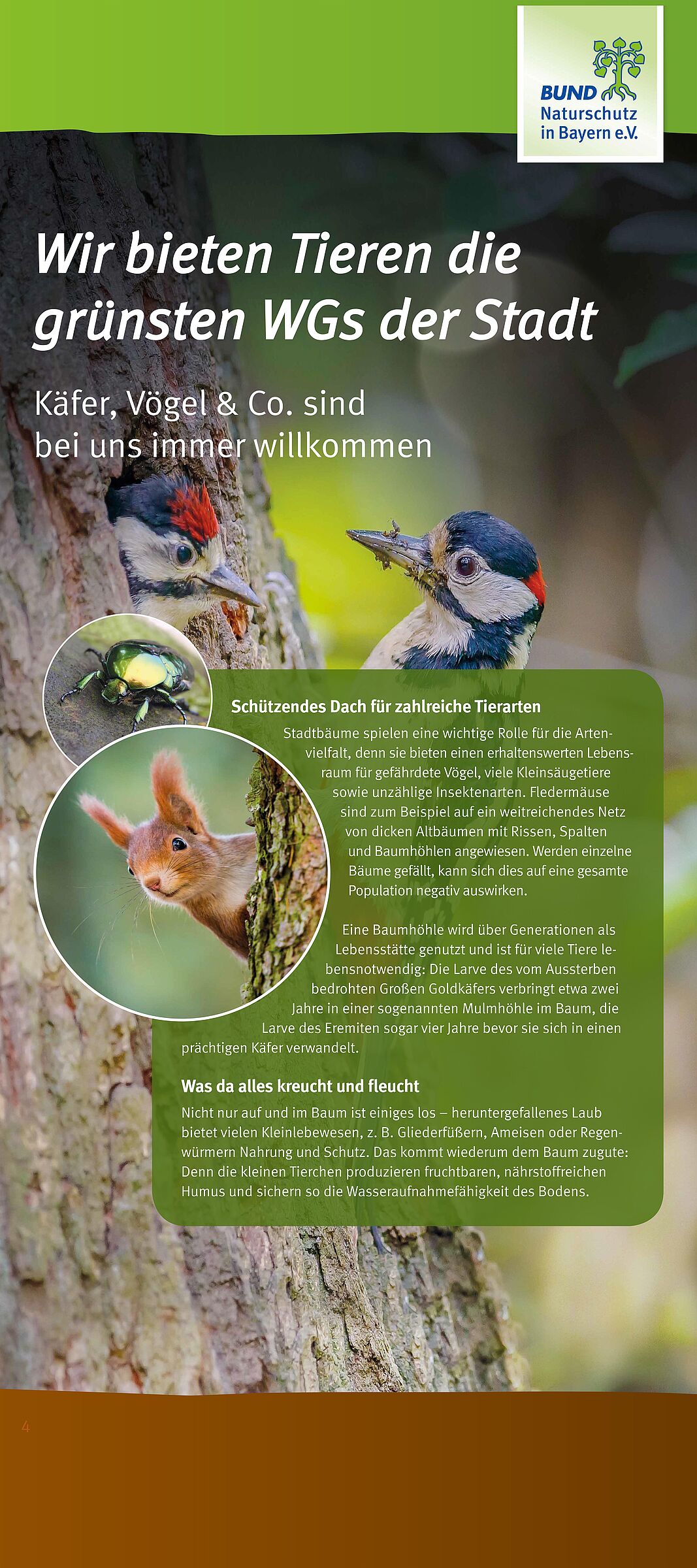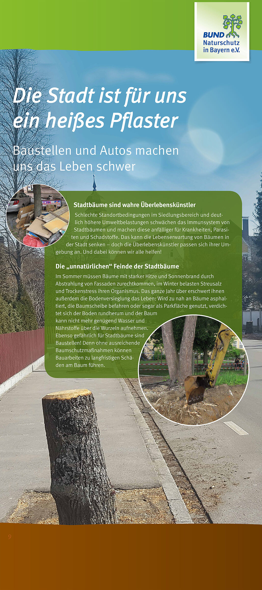 Doch schlechte Standortbedingungen im Siedlungsbereich und deutlich höhere Umweltbelastungen schwächen das Immunsystem von Stadtbäumen und machen diese anfälliger für Krankheiten, Parasiten und Schadstoffe. Wie eine sachgerechte Pflege zum Erhalt der Baumriesen beträgt und wie sich jeder einzelne für die Bäume in seiner Nachbarschaft einsetzen kann, verrät diese Ausstellung.