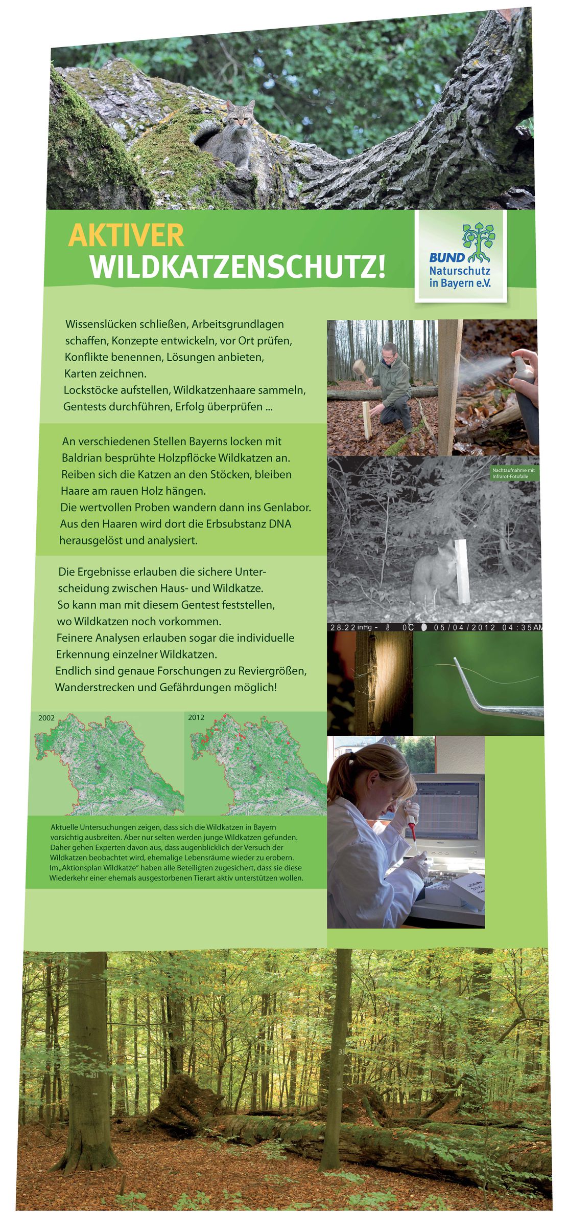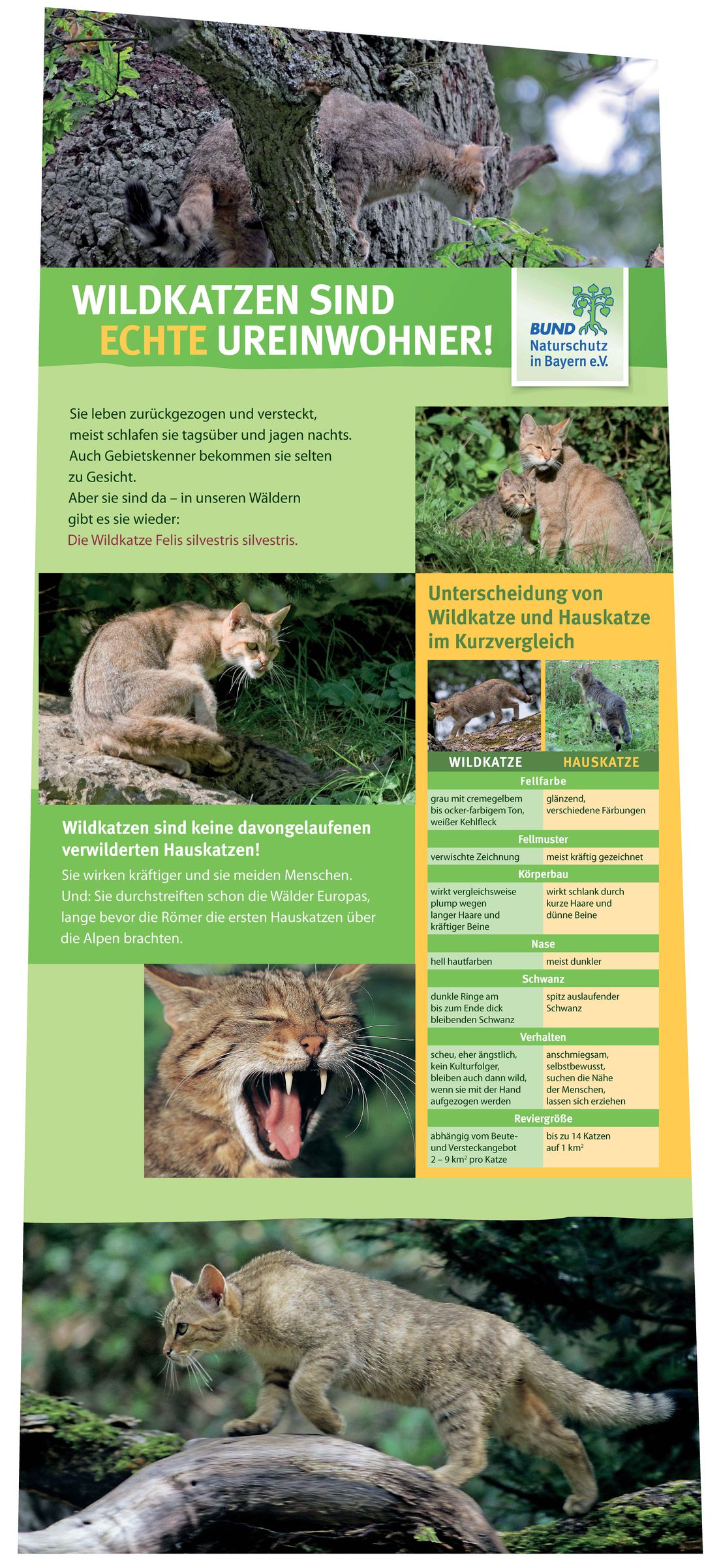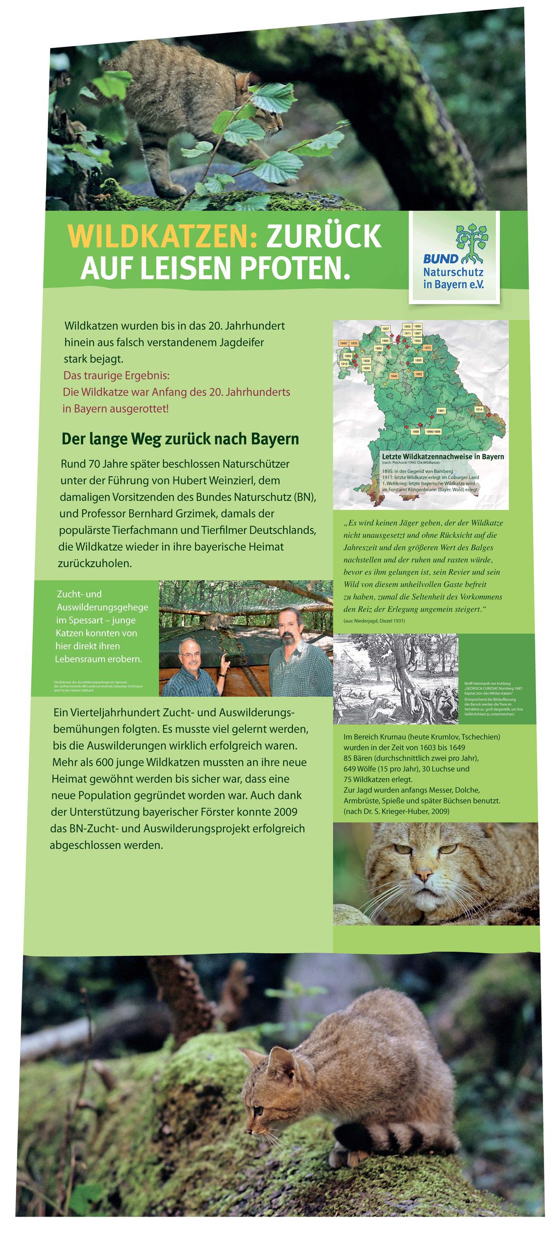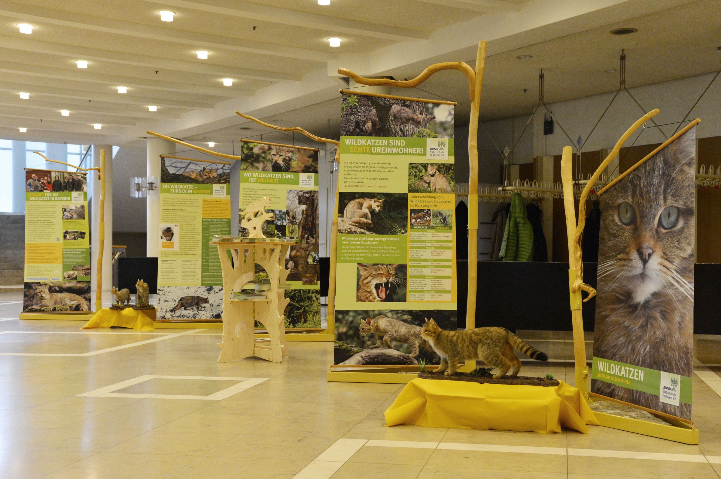 Hier setzt diese Ausstellung an. Auf fünf freistehenden Rollups wird die Wildkatze mit ihrer Geschichte, ihren Eigenheiten und ihrem Lebensraum vorgestellt.