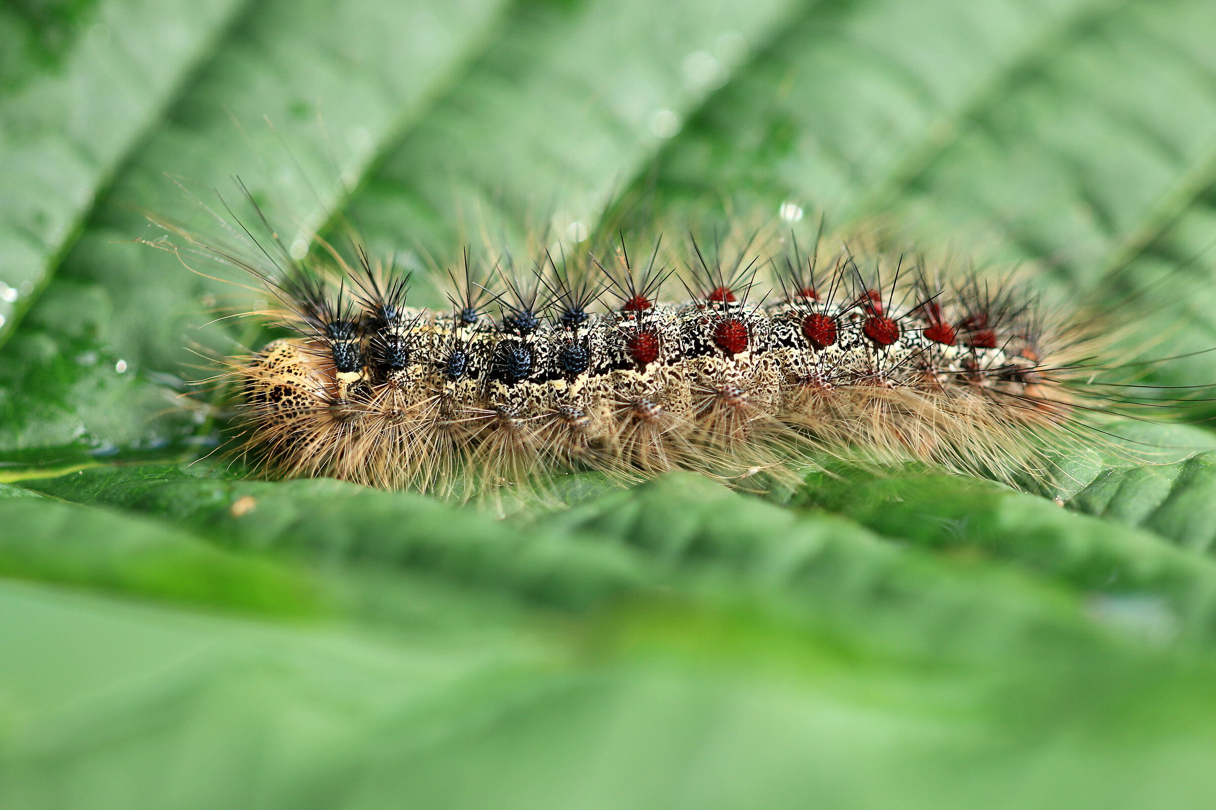 Die Raupenhaare der späten Raupenstadien können bei empfindlichen Menschen Hautreizungen hervorrufen.