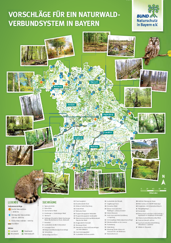 In 2016 hatten der BN gemeinsam mit Greenpeace ein Netz von Naturwäldern, verteilt über alle Regionen Bayerns vorgeschlagen, in denen sich wertvolle Wälder ohne weitere Holznutzung entwickeln sollten. Für das Verbundsystem wurden 5 große, 27 mittelgroße und eine Vielzahl kleinerer Naturwälder vorgeschlagen, insgesamt 88.000 Hektar. Sie liegen nur im öffentlichen Wald, vornehmlich im Staatswald und nicht im Privatwald. Entsprechend den nationalen Zielen der Bundesregierung sollen 10 Prozent der öffentlichen Waldfläche Bayerns bis 2020 dauerhaft für Naturwälder reserviert werden, bevor die wenigen geeigneten Waldgebiete durch die derzeit praktizierte forstliche Intensivnutzung noch weiter schwinden.